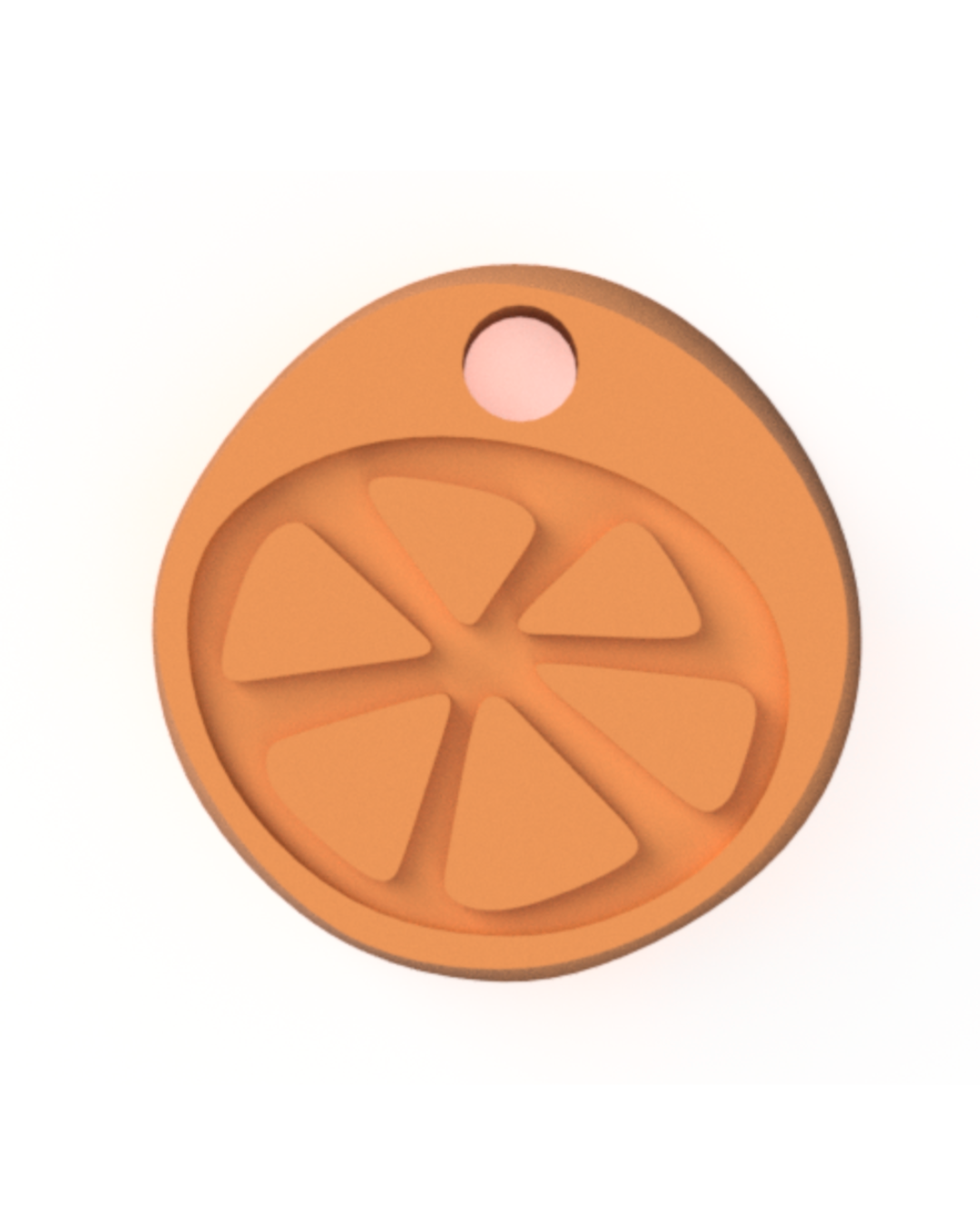 このキーホルダーは、弊社が開発したお香「このたび」と同じ形状で、長与特産のみかんをモチーフにしたデザインです。